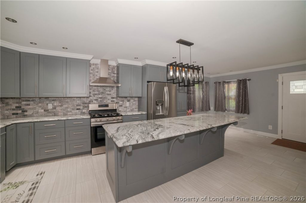 Amazing find in Huntington Park! This charming semi-open concept ranch, located in the highly sought-after Terry Sanford district, is filled with thoughtful updates!. A well-maintained living space, there???s plenty of room to live, grow, and entertain. The home features three spacious bedrooms and two beautifully renovated full bathrooms, along with a welcoming living area and a formal dining room. High ceilings in the entry and main living spaces create an airy feel and bring in abundant natural light, while updated tile flooring giving the home a modern touch. The chef???s kitchen is a standout???complete with a farmhouse sink, gas range, vent hood, stainless steel appliances, and gorgeous granite countertops???all newer and barely used. A large granite island offers exceptional storage and includes a tucked-away microwave. The adjacent eat-in area overlooks the peaceful, privacy-fenced backyard. Enjoy gatherings in the vaulted formal dining room or relax in the spacious family room featuring a decorative fireplace and backyard views. The primary suite is generously sized with accent lighting, custom cabinetry, a walk-in closet, and a stunning renovated bathroom with a tiled walk-in shower, new vanity, and backlit mirror. The secondary bathroom is equally impressive, featuring a soaking tub, updated vanity, and beautiful tilework. Two additional bedrooms offer ample space and storage. A finished detached two-car garage with electric and overhead storage, plus an extra storage shed and rear utility/storage closet. The backyard offers a serene setting with a slate patio and steps, along with a new pergola???perfect for relaxing or entertaining. A True Paradise! Major updates include a 2020 roof and a new gas water heater (January 2026). Conveniently located in established Huntington Park, you???re just minutes from schools, shopping, dining, entertainment, and Fort Bragg. This home offers the perfect blend of comfort, space, and location???A Must see!