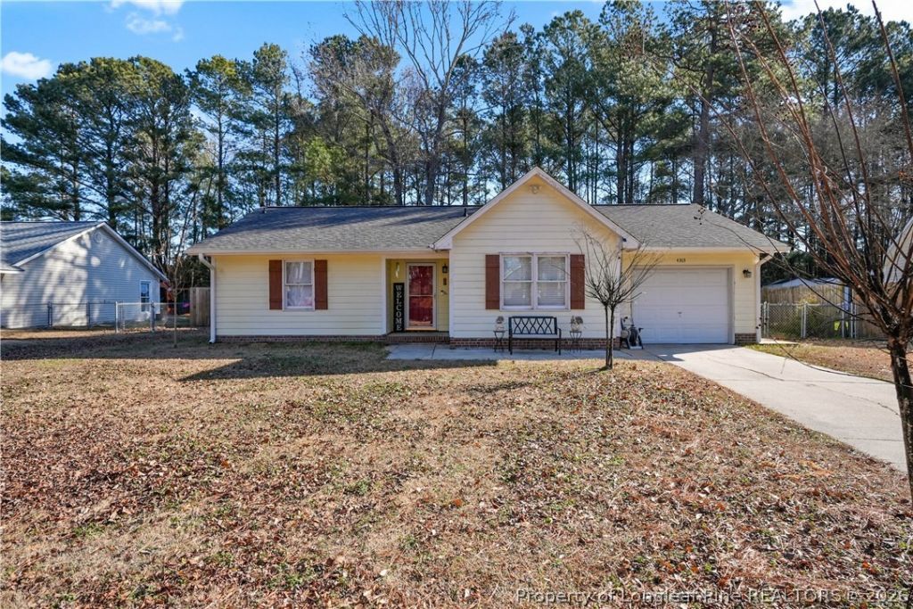 FAIRWAY FOREST â?? Charming 3 Bedroom, 2 Bath Home with Fenced Yard. This well-maintained home offers a bright and functional layout with updated flooring and a neutral interior throughout. The spacious living area provides great natural light and flows into the eat-in kitchen, which features ample cabinet space, a stainless steel refrigerator, an electric range, a microwave, a dishwasher, and room for casual dining. The primary bedroom includes a private en-suite bath, while two additional bedrooms offer flexibility for guests, a home office, or family use. Both bathrooms feature updated vanities and fixtures. The living room and bedrooms include ceiling fans, with select light fixtures featuring app-controlled functionality and built-in speakers for added convenience and ambiance. Enjoy outdoor living with a large, fully fenced backyard, a patio ideal for entertaining, and a detached storage shed. A single-car garage and concrete driveway add convenience. Vinyl siding exterior and a level lot make this property easy to maintain. Conveniently located in Hope Mills near shopping, dining, schools, and Fort Liberty, this home is move-in ready with the opportunity to personalize and add value.
